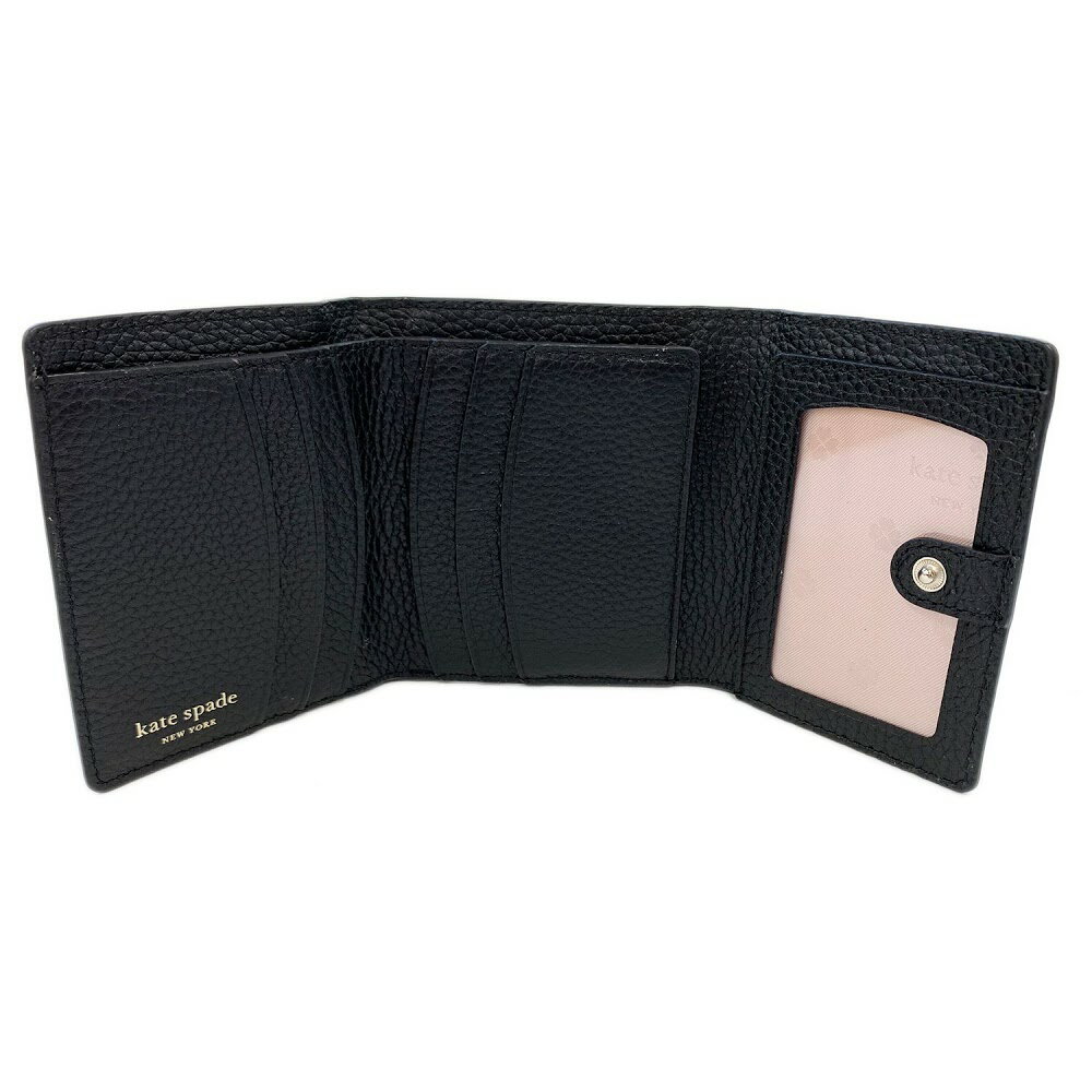 ITEM INFORMATIONケイトスペード KATE SPADE PWRU7316 001 ポリー スモール ウォレット 三つ折り財布 POLLY SMALL TRIFOLDカラーBLACK金具ゴールド開閉方法スナップボタン式 素材グレインレザー (牛革)サイズH:約8.5cm×W:約14cm×D:約2cmポケット外側:ファスナー式小銭入れ×1 / 内側:札入れ×1、オープンポケット×2、カードポケット×6、パスケース×1注意レザー商品、パテントレザー商品共に商品加工の際に付く小さい黒点やシワ、細かい傷等が見られる場合がございます。
