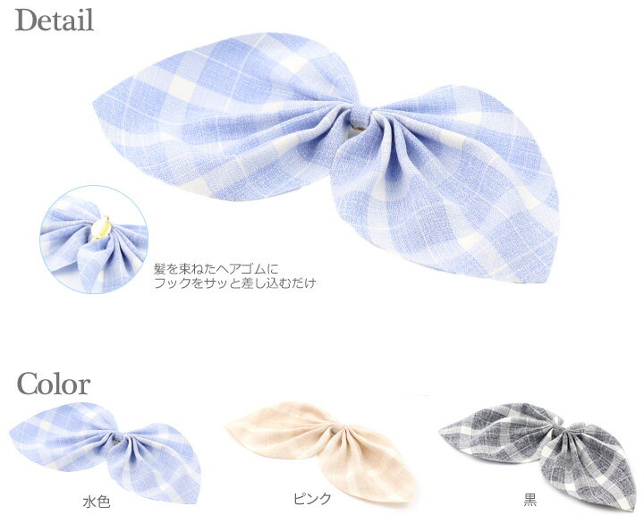 また、単品使いはもちろんですが重ね付けすることでオリジナリティー感がでます!! サイズ モチーフリボン:28×10cm 裏フック:2.5cm カラー 水色 ピンク 黒 *画面上と実物では多少色が異なって見える場合もございます。