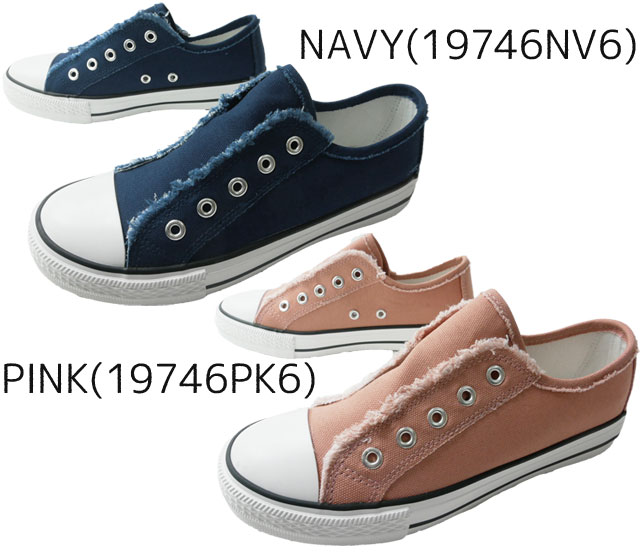 ■商品説明 レディース スリッポン スニーカー NAVY(19746NV6)PINK(19746PK6)どんなコーデにもぴったり!プチプラ価格なので一足持ってて大正解◎パンツスタイルにもスカートにも、ジャンル問わず履ける定番の無地スリッポンです。