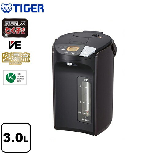 [PIS-A300-T] タイガー 電気ケトル・ポット とく子さん 蒸気レスVE電気まほうびん 容量:3.0L 高真空2重瓶(VEまほうびん構造) 蒸気キャッチャー構造 らくらく電動給湯 コードレスエアー給湯 ブラウン 【送料無料】